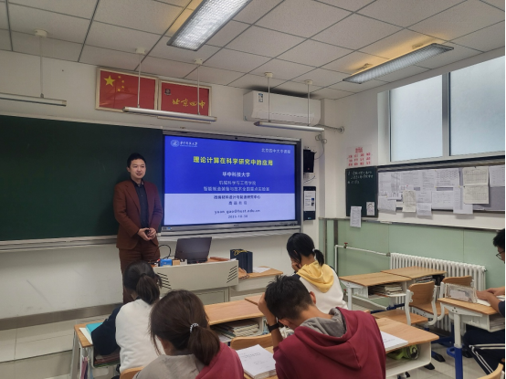 10月30日,微纳中心高远教授走进北京四中大中课程线下课堂,以《理论计算在科学研究中的应用》为题,与北京四中的同学们交流了理论科学的发展史以及学科前沿。在约90分钟的报告里,高远教授首先介绍了机械工程学科当今的研究范围,和同学们印象中的传统机械学科大相径庭,增加了同学们对机械工程学科领域前沿的浓厚兴趣。